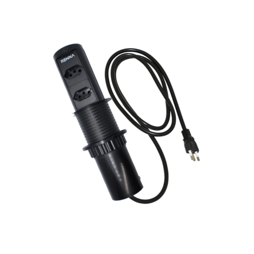 A torre de tomada Automática tem 02 tomada elétrica em um único produto. Pode ser fixado inclusive em mobiliário, como bancadas e tampos de mesa. Além de mármore e granito.