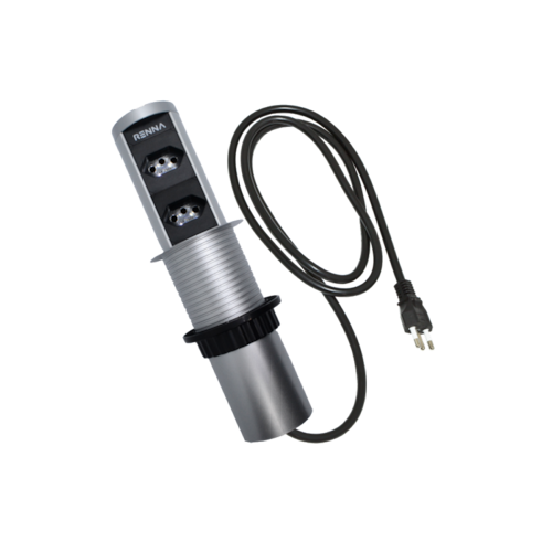A torre de tomada Automática tem 02 tomada elétrica em um único produto. Pode ser fixado inclusive em mobiliário, como bancadas e tampos de mesa. Além de mármore e granito.