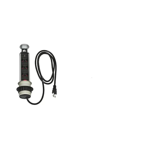 Torre De Tomada De Embutir Multiplug Bancada Mesa Balcao RennaTorre de TomadasIdeal para utilizacao em cozinhas e escritorios. Com um design discreto e acabamento cromado, fica escondida sob o movel, so aparecendo quando necessaria sua utilizacao. Possui entrada para 3 tomadas, todas com sistema de protecao antichoque.INFORMAÇÃO TECNICA - Marca: Renna- Modelo: T3T- Acabamento: Preto com Prata - Furo padrão: O60mm- Corrente elétrica: Ate 16A- Voltagem: 127V/250V (bivolt)- Potencia máxima: Ate 3500W- Espaço para 3 tomadas- Comprimento do cabo: 1,5 m