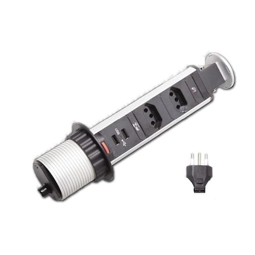 Ideal para utilização em cozinhas e escritórios, possui um design moderno com acabamento na cor cinza. Discreta, a torre fica escondida sob o móvel só aparecendo quando desejar utilizá-la. Especificações técnicas: - furo padrão ø60mm; - corrente elétrica: até 16a; - voltagem: até 230v bivolt ; - potência máxima: até 3500w; - o cabo da torre possui 1,8m. - sistema de abertura push to open; - material: alumínio com partes plásticas. Marca: Kazalinda Ean: 7898666852032