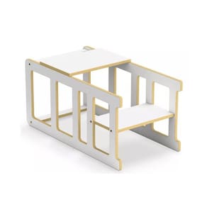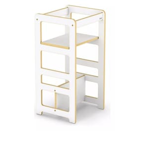 O design inovador oferece diversas formas de uso: como cadeirão para a criança sentada, torre de observação para a criança em pé, torre do ajudante para atividades e mesinha para brincadeiras.