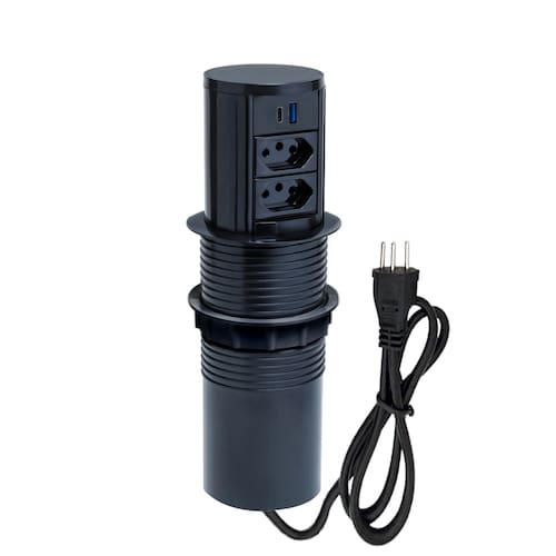 A Connect Caixa Tomada desenvolveu esta torre de tomada que é uma opção compacta para levar acessibilidade elétrica para onde você precisar. Fácil manuseio, pressione para baixo, o Totem abrirá automaticamente, após utilizá-lo, desconecte os plugs em uso e pressione suavemente para baixo até travá-lo, o corpo fica totalmente escondido dentro da bancada ou de onde estiver inserido.