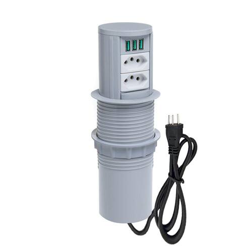 A Connect Caixa Tomada desenvolveu esta torre de tomada que é uma opção compacta para levar acessibilidade elétrica para onde você precisar. Fácil manuseio, pressione para baixo, o Totem abrirá automaticamente, após utilizá-lo, desconecte os plugs em uso e pressione suavemente para baixo até travá-lo, o corpo fica totalmente escondido dentro da bancada ou de onde estiver inserido.