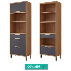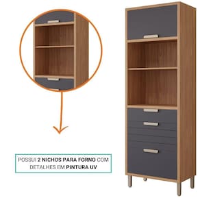 Torre Quente 100%Mdf 70Cm 2 Nichos Para Forno 2 Portas E 2 Gavetas Eloise Mgm Móveis Freijó/Titanium