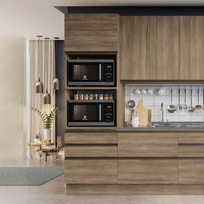 Peso Suportado: 20kg prateleira do forno/microondas, 7kg por prateleira e 6kg por gaveta.