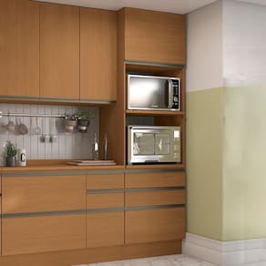 Peso Suportado: 20kg prateleira do forno/microondas, 7kg por prateleira e 6kg por gaveta.