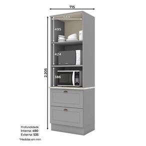 - Espaço para acomodar micro-ondas 38x68x53 cm