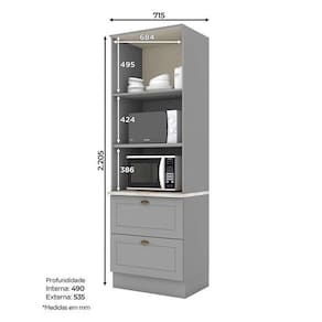 - Espaço para acomodar micro-ondas 38x68x53 cm