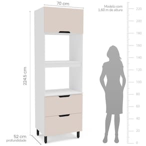 A Torre Quente Meena da Politorno Móveis combina design clássico, funcionalidade e excelente custo-benefício. Com 2 portas basculantes e 1 gaveta, oferece amplo espaço para organizar fornos, utensílios e mantimentos. Seu revestimento FF/UV garante durabilidade e resistência, enquanto a gaveta com corrediça metálica proporciona deslizamento suave e seguro. Com 224,5 cm de altura, 70 cm de largura e 52 cm de profundidade, é ideal para otimizar a cozinha, aproveitando melhor o espaço vertical sem comprometer a circulação. Seu acabamento refinado e estrutura robusta tornam essa torre quente uma escolha prática e elegante para qualquer ambiente.