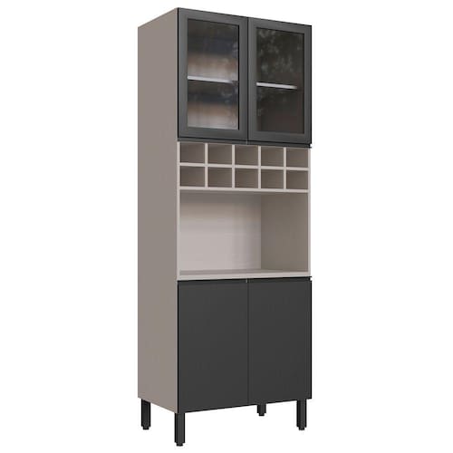 O(a) Torre Quente 4 Portas 2 Prateleiras com Vidro Fumê/Grafite - Quiditá Móveis é produzido em MDP na escala de brilho Semi-Brilho, e possui um grau de dificuldade de montagem: Médio.
