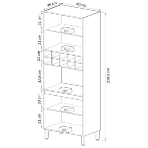 - Peso Suportado nas Prateleiras:: 8 Kg