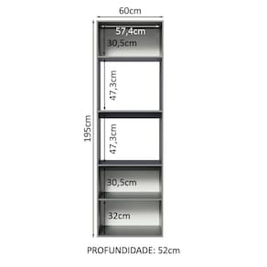 Medidas totais: - 211 cm de altura - 60 cm de largura - 52 cm de profundidade