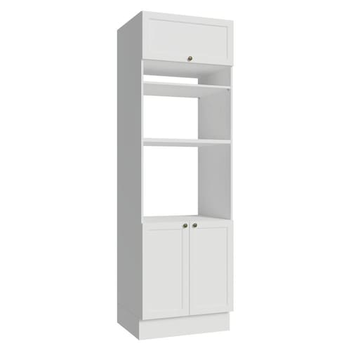 A Torre Quente da Linha Vik da Madesa une organização e praticidade em um único móvel. Conta com uma porta basculante, duas portas convencionais e um espaço especial para acomodar forno ou micro-ondas, oferecendo versatilidade para o seu dia a dia.