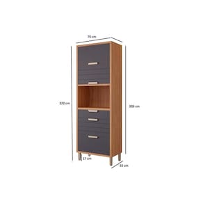 Torre Quente de Cozinha Paneleiro Eloise c/ 3 Portas Basculantes Riscadas 1 Nicho p/ Forno e 2 Gavetas 70 cm Freijo/Titanium - MGM - Blush