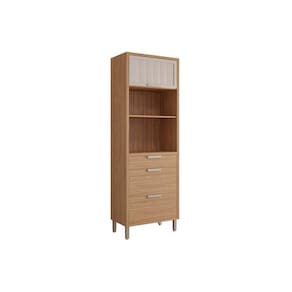Paneleiro de Cozinha Estela Duplo Forno c/2 Gavetas e 2 Portas Basculantes Ripadas 70 cm Freijo/Off White - MGM