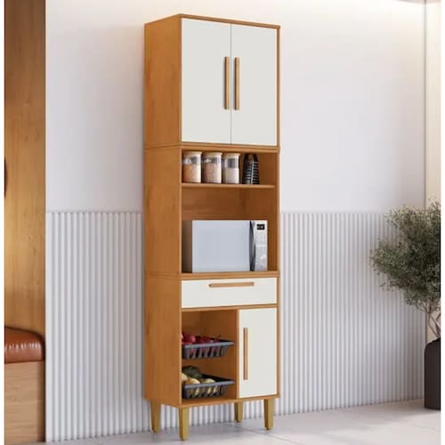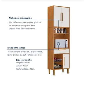Se você quer mais praticidade e organização na cozinha, nosso paneleiro com nicho para micro-ondas ou forno e fruteira é a sua escolha perfeita! Ele tem espaço de sobra para guardar suas panelas, organizar as frutas e ainda deixar seus objetos no lugar certo, sem bagunça. E o melhor? As cores clean combinam com qualquer decoração, trazendo um toque moderno e sofisticado para o ambiente. Funcional, bonito e super versátil, sua cozinha merece esse upgrade!