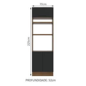 Possui dois espaços para forno ou micro-ondas de 47cm x 67cm com abertura para saída do calor. Os pés são em PVC com regulagem de altura e rodapé removível em MDP de fácil encaixe.