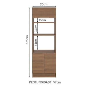 Possui dois espaços para forno ou micro-ondas de 47 cm x 67 cm com abertura para saída do calor. Os pés são em PVC com regulagem de altura e rodapé removível em MDP de fácil encaixe.