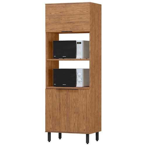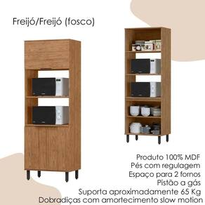 Modulo Torre Quente TT001 Cozinha, projetada para oferecer funcionalidade e sofisticação à sua cozinha, esta torre quente é fabricada em 100% MDF, com chapas de 15mm e tampos de 22mm, garantindo durabilidade e resistência. Seu design conta com pés ajustáveis, permitindo regulagem de altura e nivelamento para melhor adaptação ao ambiente. Os puxadores em alumínio e dobradiças slow motion, a peça proporciona abertura e fechamento suaves, agregando praticidade ao dia a dia. Sua estrutura inclui três portas sendo uma delas com abertura em pistão a gás, um espaço amplo para dois fornos e uma prateleira interna. Além disso, a torre suporta aproximadamente 65kg, garantindo estabilidade e segurança para acomodar seus eletrodomésticos e utensílios com eficiência. Este móvel chegará na sua casa separado em 02 volumes.
