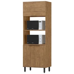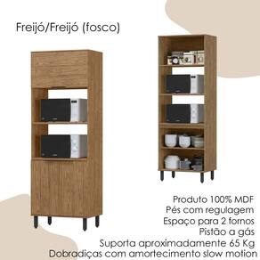 MDFModulo Torre Quente TT001 Cozinha, projetada para oferecer funcionalidade e sofisticação à sua cozinha, esta torre quente é fabricada em 100% MDF, com chapas de 15mm e tampos de 22mm, garantindo durabilidade e resistência. Seu design conta com pés ajustáveis, permitindo regulagem de altura e nivelamento para melhor adaptação ao ambiente. Os puxadores em alumínio e dobradiças slow motion, a peça proporciona abertura e fechamento suaves, agregando praticidade ao dia a dia. Sua estrutura inclui três portas sendo uma delas com abertura em pistão a gás, um espaço amplo para dois fornos e uma prateleira interna. Além disso, a torre suporta aproximadamente 65kg, garantindo estabilidade e segurança para acomodar seus eletrodomésticos e utensílios com eficiência. Este móvel chegará na sua casa separado em 02 volumes.