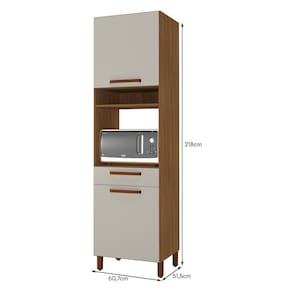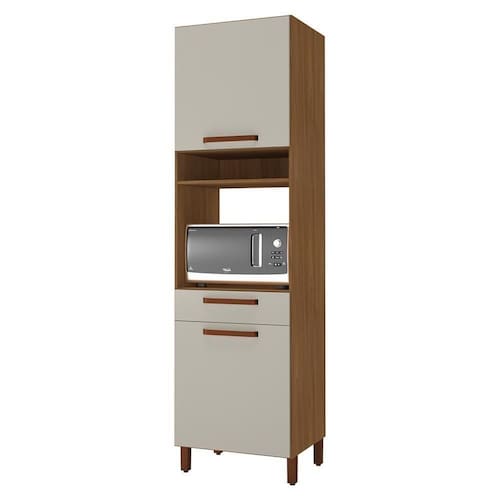 Torre Quente Monza 60,7cm 1 Forno 2 Portas E 1 Gaveta Freijó/off White - Indékes Freijó/off White Torre Quente Monza 60,7cm 1 Forno 2 Portas e 1 Gaveta - Indékes Funcionalidade e organização em um só móvel. A Torre Quente Monza é perfeita para quem busca otimizar o espaço da cozinha com elegância. Conta com estrutura em MDP e pintura UV, 2 portas com dobradiças metálicas, 1 gaveta com corrediças telescópicas e espaço dedicado para forno ou micro-ondas. O design moderno com puxadores alça em ABS e prateleira interna garante praticidade e um ótimo aproveitamento do espaço. ESPECIFICAÇÕES: - Estrutura em MDP - Pintura UV - 2 Portas - Dobradiças metálicas - 2 Gavetas - Corrediças telescópicas - Interna com prateleira - Espaço para eletrodoméstico - Puxadores alça em ABS - Pés em plástico com regulagem de altura - Amplo espaço interno
