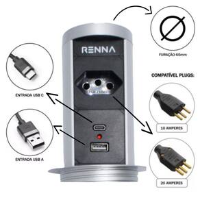 Compatível com todas as tomadas brasileiras de 10a e 20a.
