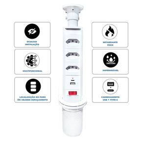 1x Torre Tomada de Embutir Retrátil 20A 3 Tomadas [Branco]