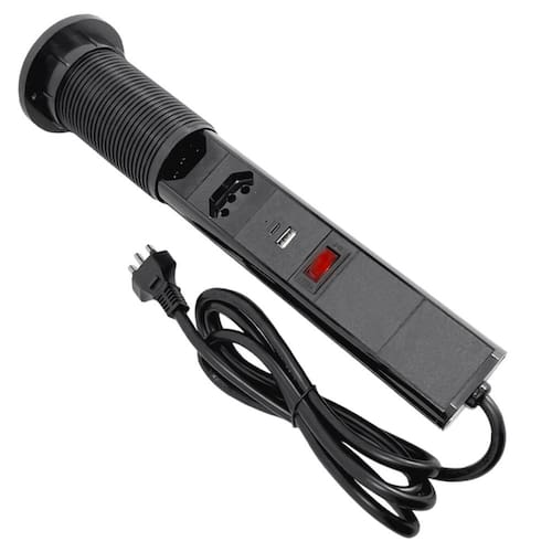Torre Tomada de Embutir Retrátil 20A com USB Preto