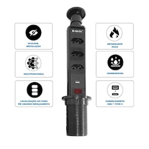 1x Torre Tomada de Embutir Retrátil 20A 3 Tomadas [Preto]
