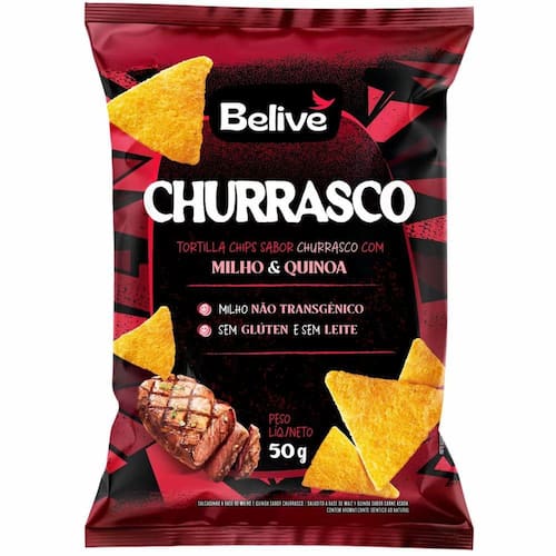 Tortilla Chips Belive Sabor Churrasco 50g - Snacks Deliciosos e Sem Glúten