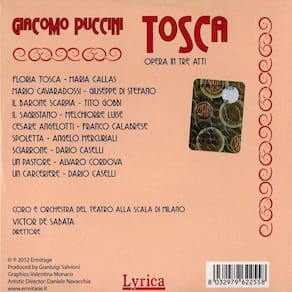 Tosca, ópera em três atos de Giacomo Puccini, em magistral gravação com Maria Callas, Di Stefano, Tito Gobbi e outros cantores no elenco, a Orquestra e Coro do Teatro Scala de Milão e direção de Victor de Sabata.