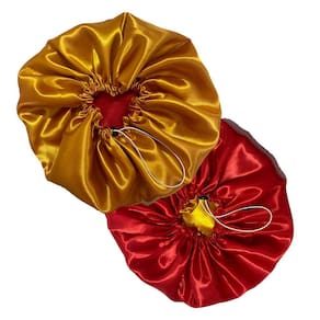 Touca de Cetim Antifrizz com Duas Camada Cetim Alto Brilho Ideal Para Umectação - Cor: Dourado e Vermelho