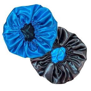 Touca de Cetim Antifrizz com Duas Camada Cetim Alto Brilho Ideal Para Umectação - Cor: Azul e Preto
