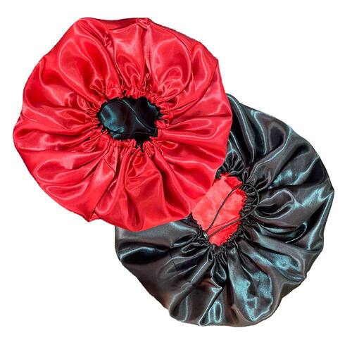 Touca de Cetim Antifrizz Dupla camada com Elastico - Ideal para Day After - Cor: Vermelho e Preto