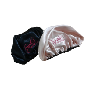 As toucas são ajustáveis Anúncio relativo a uma toca de cetim dupla face