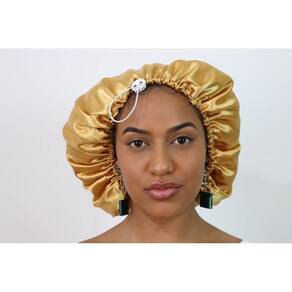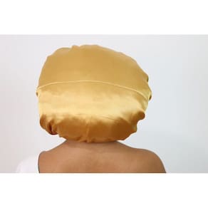 Touca de cetim dupla face dourada e branca ajustável Touca de cetim dupla face com elástico e ponteira ajustável
