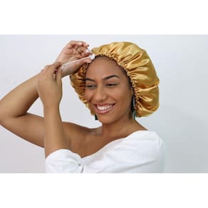 Ideal para umectação noturna Fabricados com tecido de qualidade e leve, não marca nem amassa os cachos enquanto eles ficam guardados na touca para a umectação noturna. E vale ressaltar que nossas fronhas e xuxinhas de cetim também são aliadas poderosas do dia seguinte. Normalmente viramos de um lado para o outro enquanto dormimos, e todos esses movimentos são responsáveis pelos fios de cabelos arrepiados ao acordar. Ao usar a touca, a superfície lisa do cetim evita o atrito e a energia estática que causa o frizz, mantendo seu cabelo alinhado e definido.