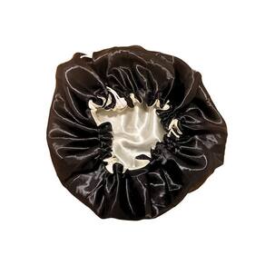 Durma linda e acorde linda a touca de cetim aromá mantém a hidratação do cabelo enquanto dorme, possui regulagem com elástico e é dupla face, de um lado é champanhe e do outro é preta.