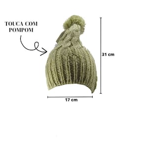 A Touca de Malha com Pompom Adulto é uma escolha elegante e funcional para os dias frios. Feita 100% em poliéster, esta touca é leve e confortável, proporcionando um ajuste perfeito e mantendo a cabeça aquecida. O pompom no topo adiciona um toque divertido ao design, tornando-a uma opção moderna e estilosa para o inverno.