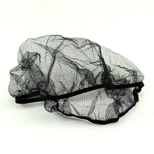 100 toucas de rede pretaDescrição e características:Touca de proteção em nylon em formato de circunferência, com furos tipo colmeia, embaladas uma a uma, reutilizável.Composição:100% tecido sintético em poliamida.Indicações e instruções de uso:Indicada para proteção da cabeça do trabalhador e para evitar queda do cabelo no produto impedindo sua contaminação e contato do cabelo com máquinas que possam colocar em perigo o trabalhador. Utilizadas em cozinhas industriais, panificadoras, indústrias de alimentos, refeitórios, entre outros.Retirar a touca de sua embalagem e colocá-la na cabeça começando a partir da testa para a base da nuca. Adaptar na cabeça de modo confortável.Descrição:Cor: pretoQuantidade: 100 unidades.Marca: talge