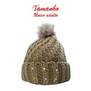 Touca Gorro Adulto Marrom Pompom Tamanho Único -