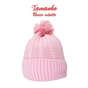 Touca Gorro Adulto Peluciada Rosa Pompom Tamanho Único -