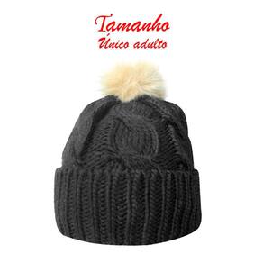 Touca Gorro Adulto Preta Pompom Tamanho Único -