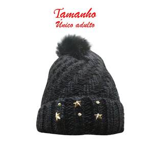 Touca Gorro Adulto Preta Pompom Tamanho Único -