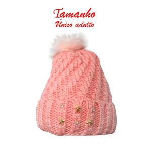Touca Gorro Adulto Rosa Claro Pompom Tamanho Único -