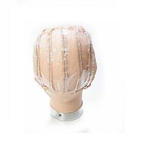 Touca para confecção de perucas lace front- base para confecção de perucas. - Possui ajuste na parte da nuca. - Tela lace front na parte frontal medindo aproximadamente 3 cm de tela.Na material feito com pó de arroz. Mterial: Plastico Tecido Medidas: 17 de comprimento 14 de Largura Marca: C e c shop
