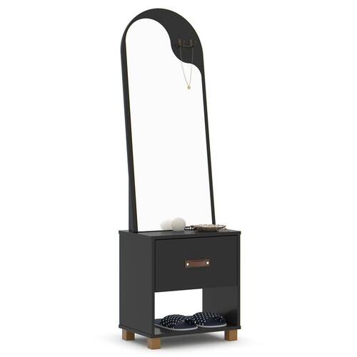 Toucador com Espelho 1 Gaveta Nicho e 2 Ganchos Oranix - Preto