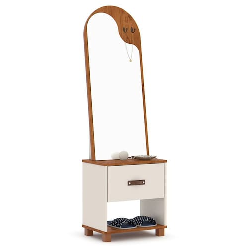 • 1 x Toucador com Espelho 1 Gaveta Nicho e 2 Ganchos Oranix