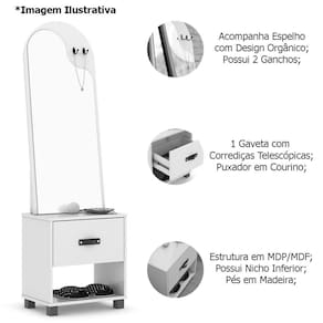 Características do Toucador com Espelho 1 Gaveta Nicho e 2 Ganchos Oranix: