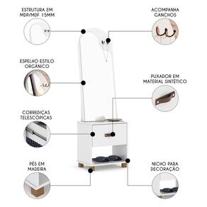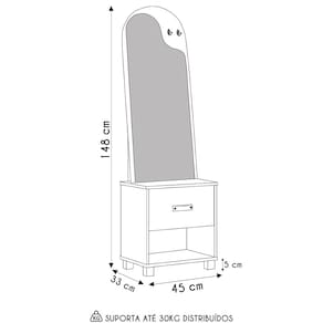 Com um design moderno e clean, o toucador Organic se adapta facilmente a qualquer ambiente, seja ele uma suíte, closet ou até mesmo um quarto pequeno. Suas linhas suaves e acabamento impecável conferem um toque de sofisticação ao ambiente, deixando-o ainda mais elegante. O destaque desse móvel estilo penteadeira é o seu amplo espelho, que proporciona uma visão completa do seu rosto e cabelo, permitindo que você faça sua maquiagem ou arrume o cabelo com precisão. Já com a gaveta, você terá espaço suficiente para guardar seus produtos de beleza, como maquiagens, cremes, perfumes e acessórios. Tudo ficará organizado e ao alcance das suas mãos, facilitando a rotina de beleza do seu dia a dia.